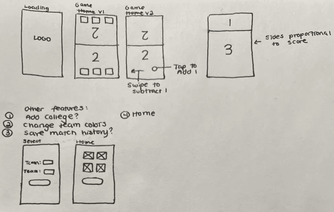 I started with rough sketches of basic functions, like responsive scoring and match history